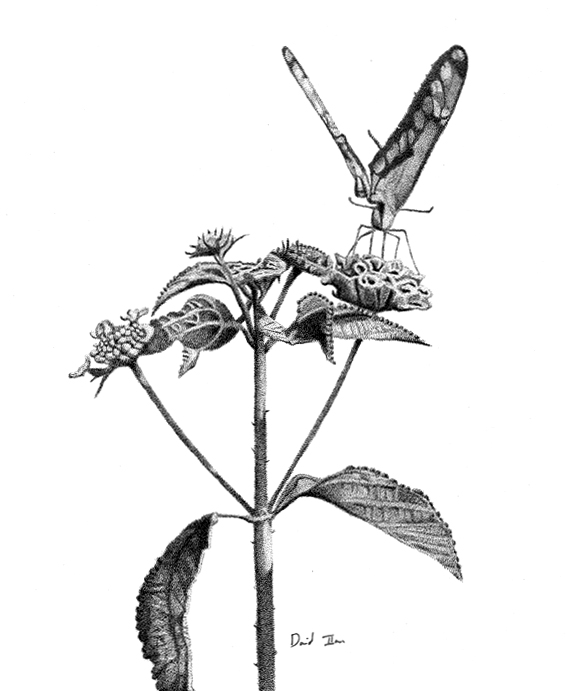 The first three samples below are drawings David did as a teenager. You can see the pen he used was thicker and the drawings were less detailed. Compare these to the recently drawn butterfly on the right.